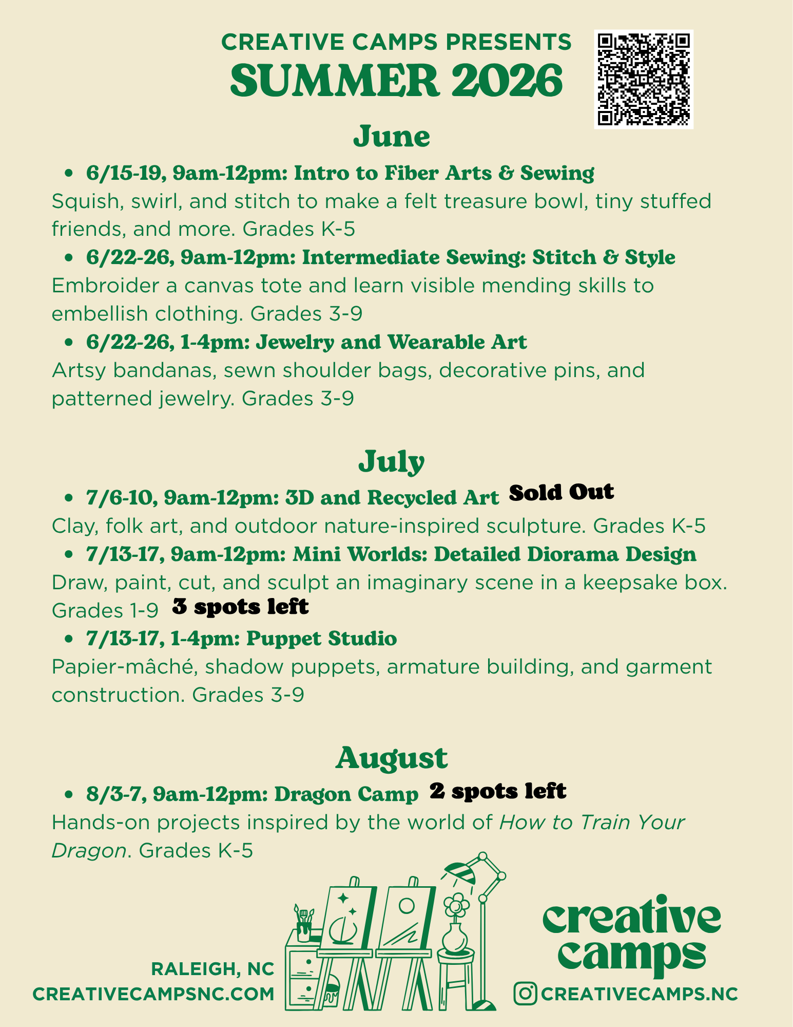 Summer is just around the corner, and I wanted to send a quick reminder that camp registration is open—with a few especially fun June sessions coming up soon!